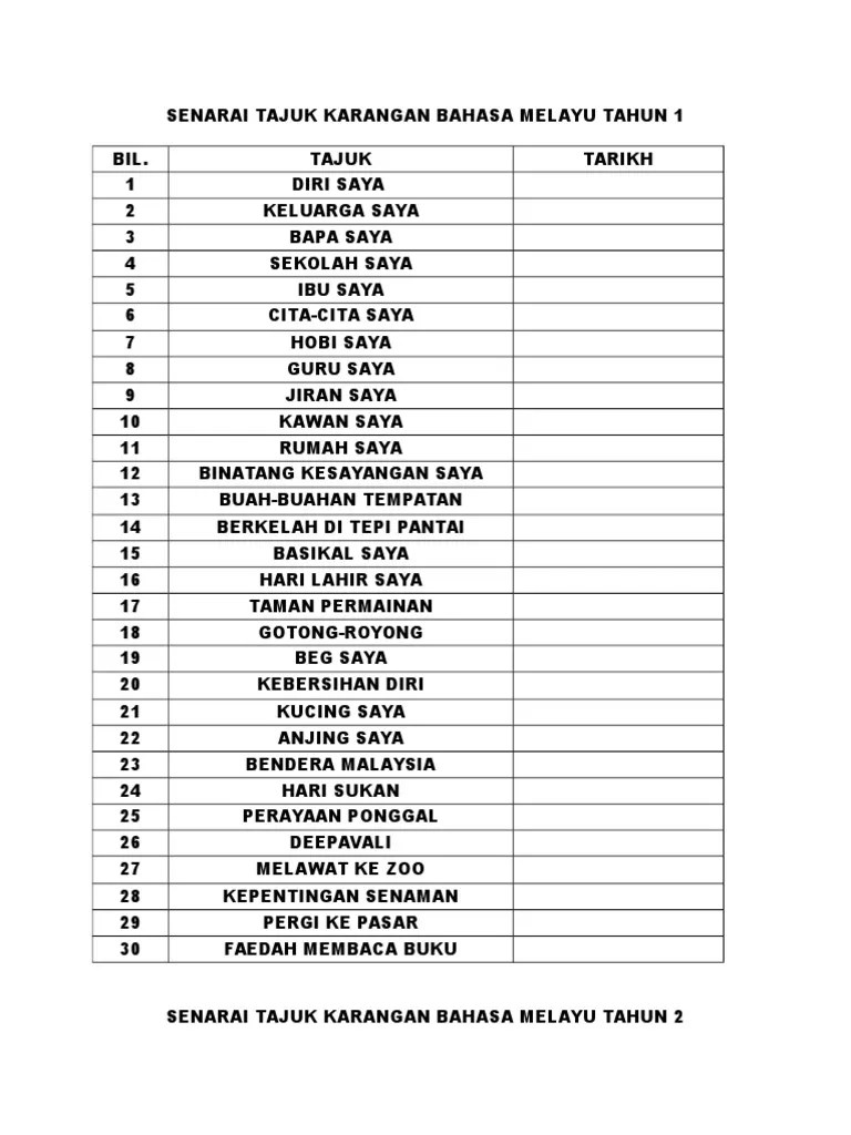Karangan Bahasa Melayu Tahun 4 2020 - Tajuk Karangan Bahasa Melayu Tahun 3